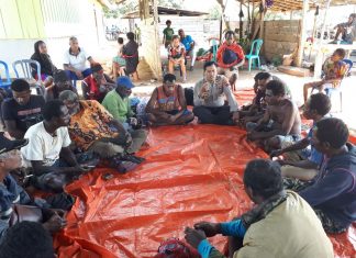 JAYAPURA (PT) - Kapolres Jayapura Kota, AKBP. Gustav R. Urbinas, SH, S.IK melalui Kasat Binmas AKP. M. Iskandarsyah, SP, S.IK, MH bersama stafnya melakukan anjangsana kepada warga masyarakat yang berjualan di pertigaan Koya-Keerom Distrik Muara Tami, Selasa (31/7/2018).