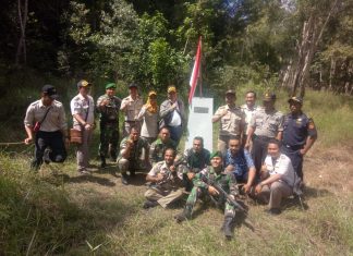 JAYAPURA (PT) - Kepala Kepolisian Resor Merauke, AKBP. Bahara Marpaung, SH melalui Wakapolsek Sota, I Wayan Sudarsana bersama TNI dan instansi terkait lainya melaksanakan patroli patok tapal batas RI-PNG, Selasa (31/7/2018).