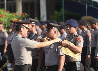 JAYAPURA (PT) – Bertempat di halaman Mapolda Papua telah dilaksanakan kegiatan upacara kenaikan pangkat luar biasa bagi anggota Polri Polda Papua, Rabu (1/8/2018).