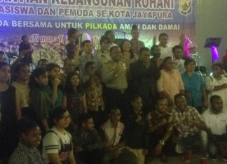 JAYAPURA (PT) - Ratusan mahasiswa dan pemuda di Kota Jayapura mengikuti Kebaktian dan Kebangunan Rohani (KKR) dari Lembaga Pelayanan Mahasiswa Indonesia (LPMI) bekerja sama dengan Polres Jayapura Kota, Selasa (12/6/2018).