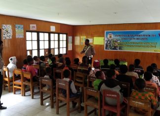 JAYAPURA (PT) - Dalam rangka melaksanakan Police Goes To School, Satlantas Polres Puncak Jaya melaksanakan sosialisasi UU No 02 tahun 2009 tentang pengemudi dibawah umur dan pengaruh miras di SD Negeri Tingginambut, Distrik Tingginambut, Kabupaten Puncak Jaya, Kamis (7/6/2018...