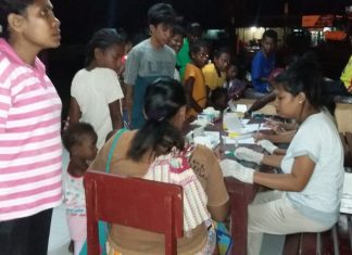 JAYAPURA (PT) - Pelayanan bersama antara Polsek Demta dan Puskesmas Demta dibackup Dinas Kesehatan Kabupaten Jayapura menggelar pelayanan kesehatan kepada warga Distrik Demta, Rabu (6/6/2018).