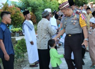 JAYAPURA (PT) – Kapolda Papua yang diwakili oleh Wakapolda Papua, Brigjen Pol. Drs. Yakobus bersama pejabat utama menghadiri kegiatan silaturahmi dan buka puasa bersama dengan para santri Pondok Pesantren Hidayatullah, Distrik Muara Tami, Kota Jayapura. Jumat(8/6/2018).