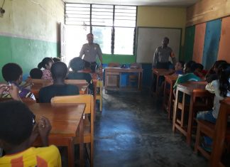 JAYAPURA (PT) - Dalam rangka mencegah bahaya dari narkotika, Polsek Nimbokrang terus mensosialisasikan bahaya narkotika di PPA Gereja Maranatha, Kampung Benyom Jaya I, Distrik Nimbokrang Kabupaten Jayapura, Kamis (24/5/2018).