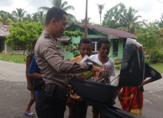 JAYAPURA (PT) – Dalam rangka meningkatkan minat membaca anak-anak di wilayah binaannya Kampung Insrom, Distrik Biak Kota, Kabupaten Biak, Bhabinkamtinmas, Bripka Agus Iriansyah aktif melakukan perpustakaan keliling.