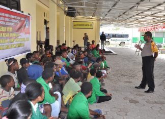 JAYAPURA (PT) - Merasa prihatin dengan banyaknya anak-anak Papua yang masih menghisap lem aibon, Kapolres Jayawijaya, AKBP. Yan Pieter Reba, SE, M.Si memberikan pembinaan kepada anak-anak jalanan di Mapolres Jayawijaya, Sabtu (19/5/2018).