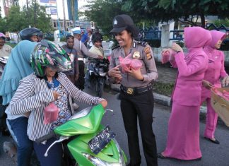 JAYAPURA (PT) - Pengurus Bhayangkari Polres Mimika bersama jajaran Polwan Polres Mimika bagi-bagi takjil kepada umat muslim yang sedang melaksanakan ibadah puasa.