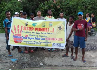 JAYAPURA (PT) - Dipimpin Kanit Sabhara Polsek Senggi Aipda Ardhi Supriyono bersama 3 Anggota Polsek Senggi lainnya melaksanakan Sosialisasi Pemilu Damai, Berita Hoax dan Sapu Bersih Pungutan Liar Saber Pungli di Jalan Raya Trans Papua Distrik Senggi Kabupaten Keerom,...