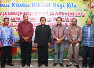JAYAPURA (PT) - Persatuan Ojek Kamtibmas Binaan Satuan Lantas Polres Biak Numfor menggelar Natal bersama di lapangan Apel Taruna Bhayangkara, Polres Biak Numfor, Senin (7/1).
