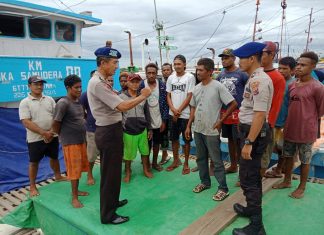 JAYAPURA (PT) - Unit Patroli Sat Sabhara laksanakan Patroli Dialogis di Pelabuhan Rakyat Kali Sanggei, sekaligus berikan himbauan kamtibmas tentang cuaca ekstrim di perairan Laut Waropen, Sabtu (5/1).