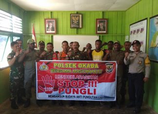 JAYAPURA (PT) - Kepala Kepolisian Resor Merauke AKBP Bahara Marpaung, SH melalui Kapolsek Okaba Iptu Ary Priamgodo dan Kapolsek Tanah Miring Ipda Harapan Purba beserta anggotanya melaksanakan Sosialisasi Sapu Bersih Pungutan Liar (Saber Pungli), stop hoax atau berita bohong dan upaya...