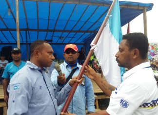 WAROPEN (PT) - Ketua Ikatan Motor Indonesia (IMI) Papua, Yan P Mandenas, S.Sos, M.Si secara resmi melantik Badan Pengurus Korwil IMI Kabupaten Waropen periode tahun 2018-2020 di Marchio Mix Sircuit, Batusaman, Waropen.