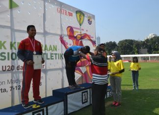 JAKARTA (PT) - Atlet putra Papua, George Gebze yang baru disiapkan dua tahun berbuah manis dengan meraih medali perak kelas remaja, pada dalam Kejuaraan Nasional Atletik U-18, U-20 dan Senior yang berlangsung di Stadion, Madya, Senayan, Jakarta, Senin, (7/5/2018).