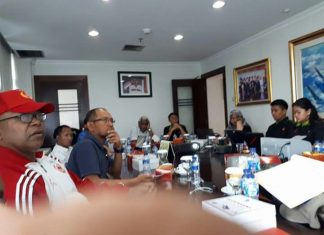 Rapat yang berlangsung di ruang Rapat PB PON Papua dihadiri Wakil Ketua Puslatprov, Jhony Banua Rouw, Sekum...