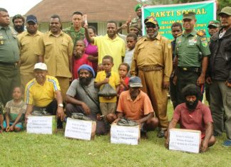 TOLIKARA (PT) - Dalam rangka menyambut Hari Ulang Tahun (HUT) Korem 172/PWY ke 52 yang jatuh tepat 7 Nopember 2018, Koramil 1702-11/Karubaga melakukan aksi bhakti sosial kepada warga karubaga tepatnya di Desa Kogimagi, Distrik Karubaga, Senin (5/11).