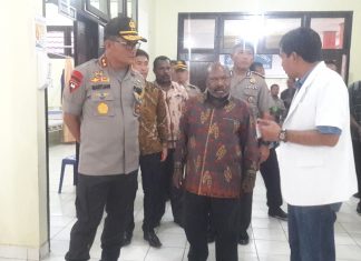 JAYAPURA (PT) - Bupati Nduga, Yarius Gwijangge, SSos, MSi didampingi Sekda Kabupaten Nduga mengunjungi para guru dan tenaga medis yang korban tindakan kekerasan dan pelecehan seksual yang dilakukan oleh Kelompok Kriminal Bersenjata (KKB) di Mapenduma, saat mereka menjalani trauma...