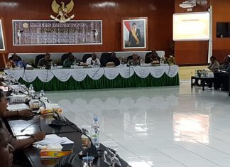 JAYAPURA (PT) - Majelis Rakyat Papua (MRP) bersama Gubernur Papua, Lukas Enembe, SIP, MH menggelar rapat koordinasi dengan Forkimpimda Papua yang dihadiri DPR Papua, Waka Polda Papua, Kasdam XVII/Cenderawasih, Kajati, Danlanud, Danlantamal...