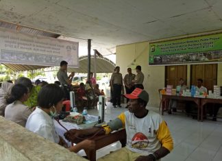 JAYAPURA (PT) - Dalam rangka menyambut Hari Kartini sekaligus HUT Kemala Bhayangkari, Polda Papua melalui Bid Dokkes melakukan bhakti sosial dan pemeriksaan kesehatan bagi warga di Kampung Ubiyau, Distrik Arso, Kabupaten Keerom, Selasa (17/4/2018).